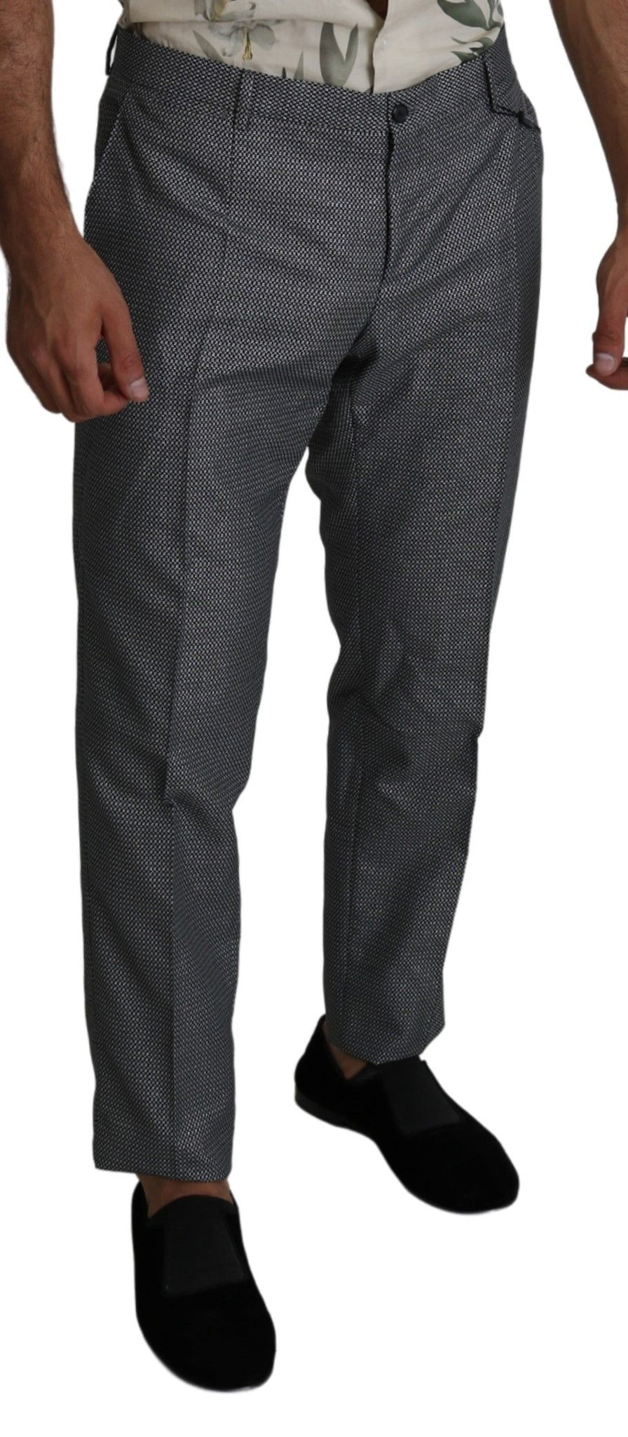 Step into luxury with these Dolce & Gabbana men’s dress trousers. Perfect for adding a touch of sophistication to your wardrobe, these trousers deliver both modern elegance and comfort. Crafted in Italy, they feature a sleek slim fit design and are adorned with subtle logo details for an unmistakable touch of class. Whether for a business meeting or a formal event, these trousers promise to elevate your style quotient.