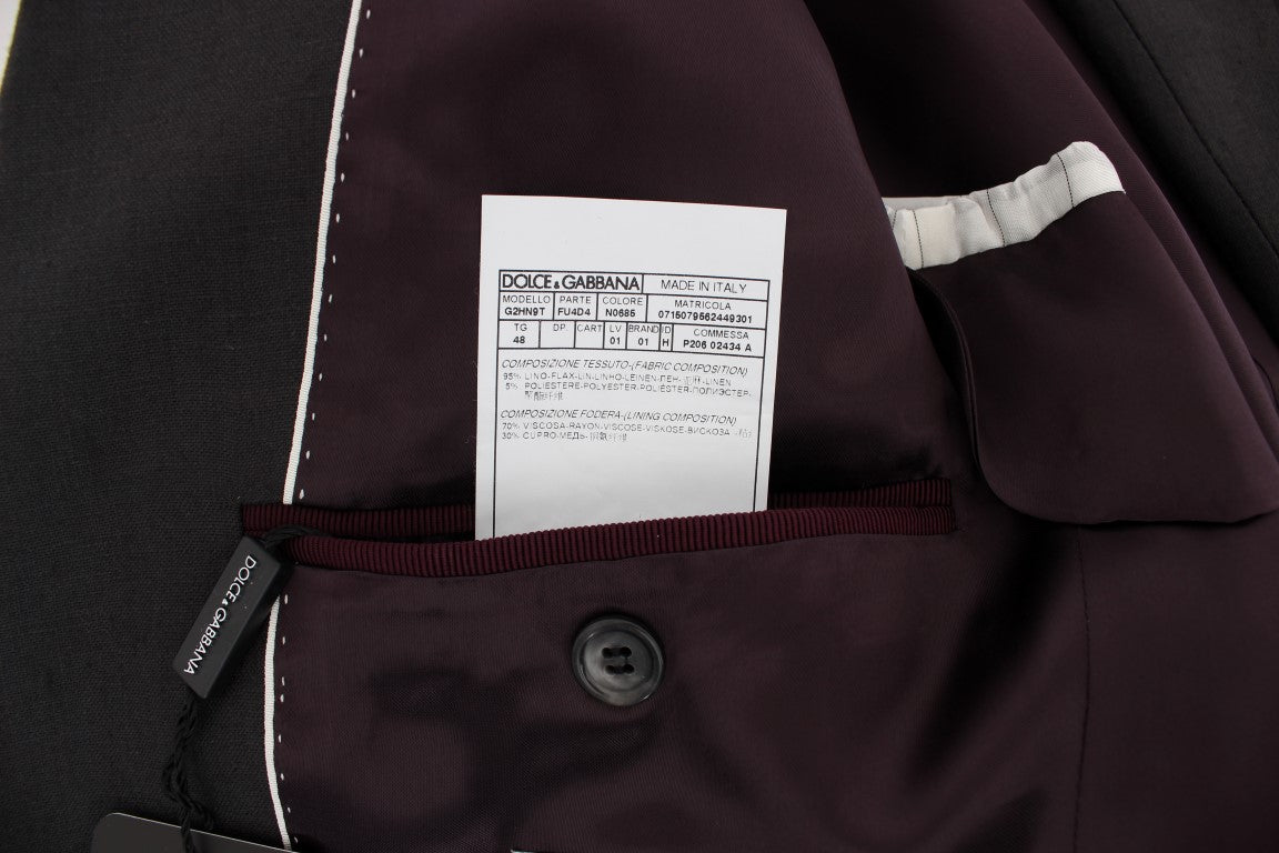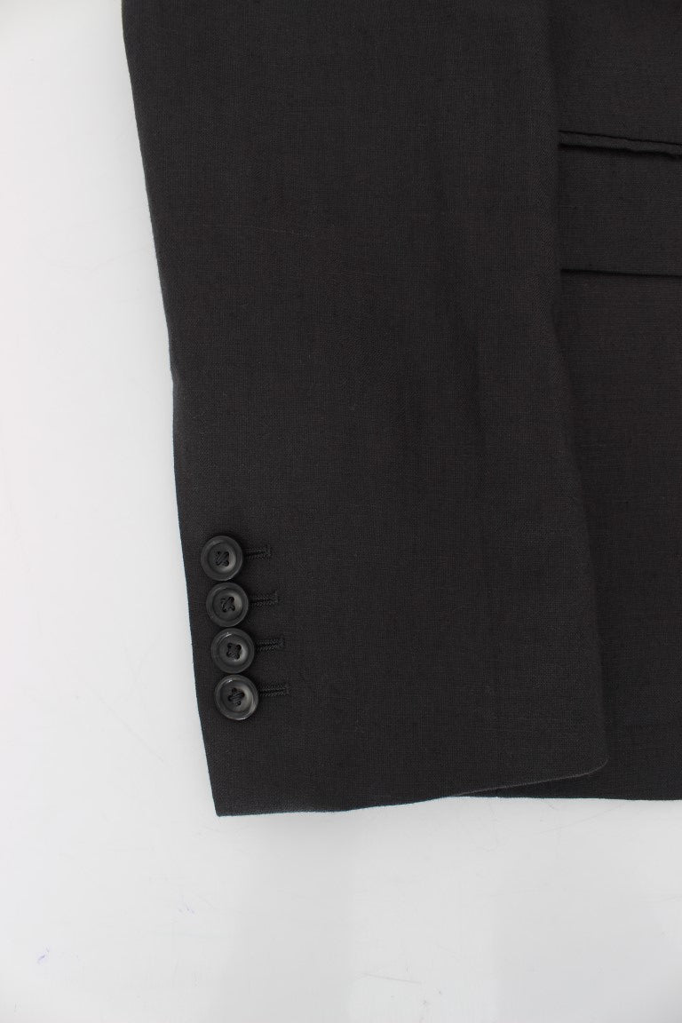 Step into sophisticated elegance with this stunning two-piece Dolce & Gabbana ensemble, featuring a sleek gray linen blazer and matching vest. Tailored to a slim fit, this set embodies luxury with a touch of traditional Italian craftsmanship. The single-breasted blazer boasts a two-button closure, paired with a five-button vest, complete with an adjustable back strap, ensuring a perfect fit. The ensemble is as functional as it is fashionable, with multiple pockets for practicality and an open back vent for added comfort. Experience unparalleled style and precision with this exquisite Dolce & Gabbana creation, perfect for those who demand the finest.