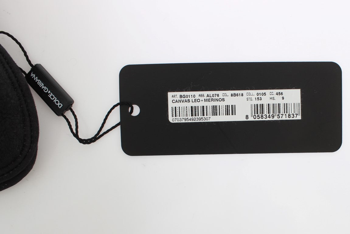 Discover the epitome of winter luxury with our elegant gloves, meticulously crafted by the renowned fashion house Dolce & Gabbana. Perfect for elevating your seasonal wardrobe, these gloves feature a unique blend of gray wool and a bold green leopard print on canvas, punctuated by radiant gold and silver studs for a touch of opulence. Experience unmatched warmth and comfort with the gloves’ sumptuous shearling lining, and let the discreet logo detailing subtly showcase your taste for exclusive fashion. Handmade in Italy, they promise both style and supreme quality, making them an essential accessory for the discerning gentleman.