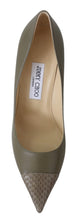 Step into luxury with these pristine, brand new pumps from Jimmy Choo, complete with tags, a dustbag, and the original shoe box. Crafted from the finest Leather/Elaphe, the iconic Pebble Amika olep Leather Pumps exude sophistication and offer an exquisite touch to any ensemble. Designed in a charming pebble green, they embody class with a fashion-forward edge.