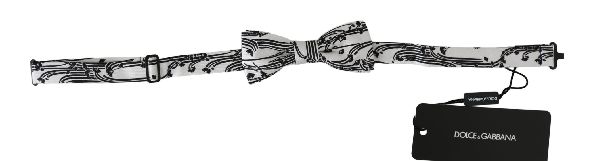 Grace your ensemble with the impeccable elegance of this stunning 100% Authentic Dolce & Gabbana bow tie. Crafted from luxurious silk and adorned with a refined white pattern, this tied bow tie exudes exclusivity and Italian craftsmanship. It comes with an adjustable length neck strap to ensure a perfect fit for any occasion, along with original tags and a store bag.