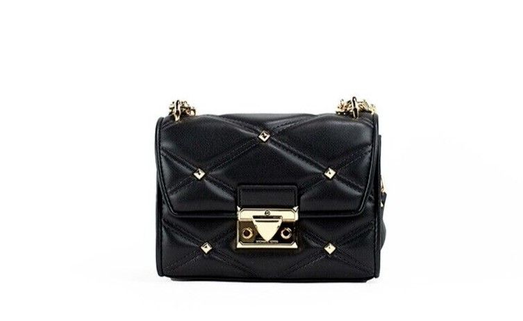 Style: Michael Kors Serena Small Studded Flap Crossbody Handbag (Black)