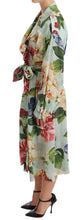 Step out in style with this exquisitely designed Dolce & Gabbana Wrap Coat Trench. A testament to superb Italian craftsmanship, this coat boasts a vibrant multicolor floral print, instantly elevating your outerwear collection. The jacket’s defining features include a detachable waist tie that accentuates the silhouette, practical side pockets, and a sophisticated double-breasted front with button closures. Inside, you’ll find a lush lining that ensures comfort and luxury with every wear. It’s not just a coat; it’s a statement piece that completes any outfit with a touch of elegance.