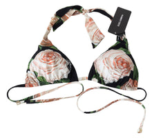 Indulge in the opulence of summer with this exquisite Dolce & Gabbana bikini top. Gorgeous and brand new with tags, it features a vibrant floral print on luxuriously stretchy fabric. Perfectly fastened at the back with a logo-embossed closure and a chic tie at the neck, this top is an emblem of Italian craftsmanship and style.