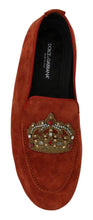 Experience the epitome of Italian luxury with these Dolce & Gabbana moccasin slippers. Designed for those who appreciate high craftsmanship, these flats are perfect for adding a touch of elegance to your ensemble. With their vibrant orange hue and a dazzling crystal crown, these loafers are not only comfortable but also a statement of style.