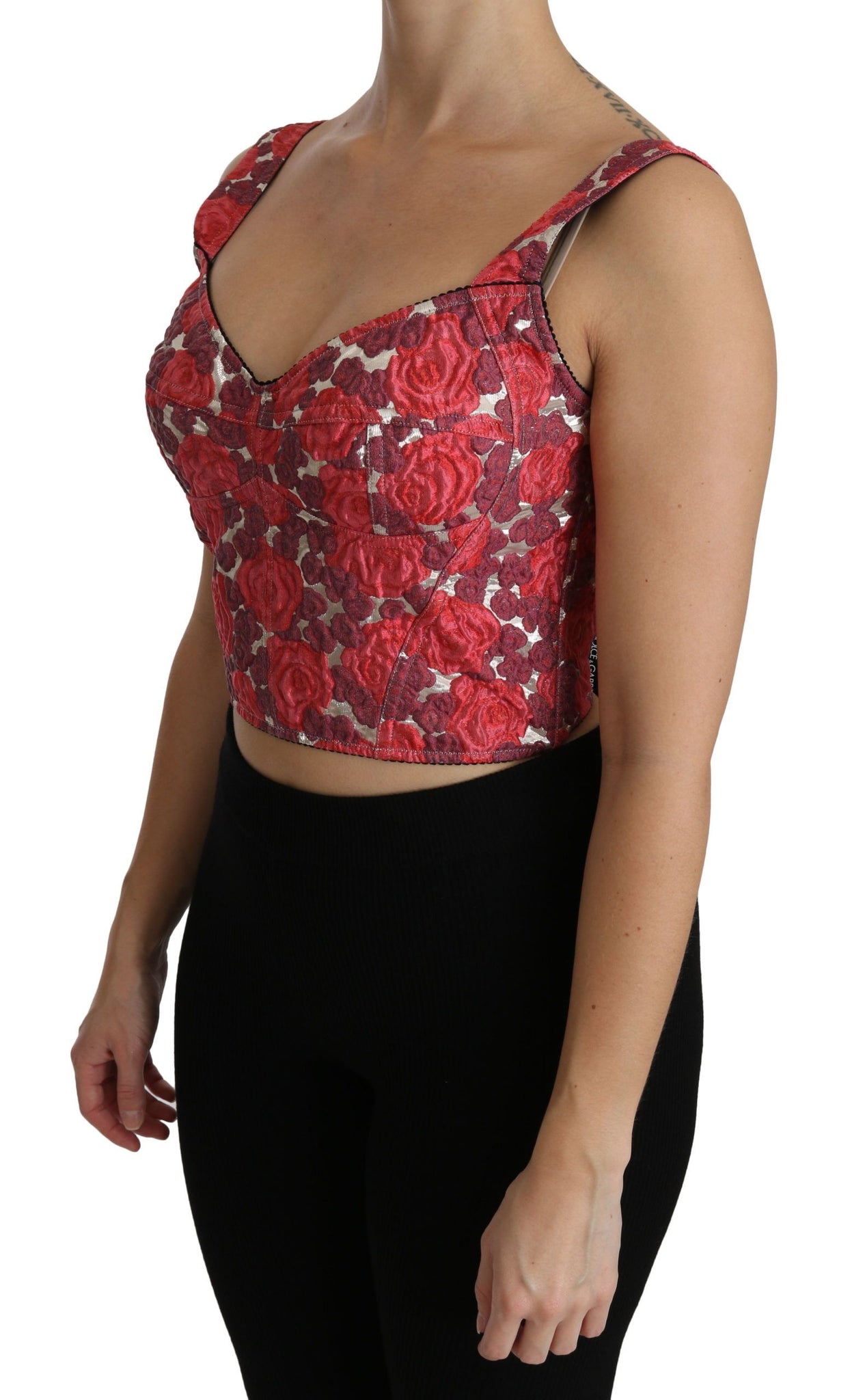 Step into spring with elegance in this exquisite spaghetti strap sleeveless cropped top from Dolce & Gabbana. Perfect for making a sophisticated statement, it features a luxurious pink floral brocade design that exudes the brand’s signature Italian flair. Ideal for pairing with a high-waisted skirt or trousers, this piece will elevate any ensemble with its beautiful craftsmanship and logo details.