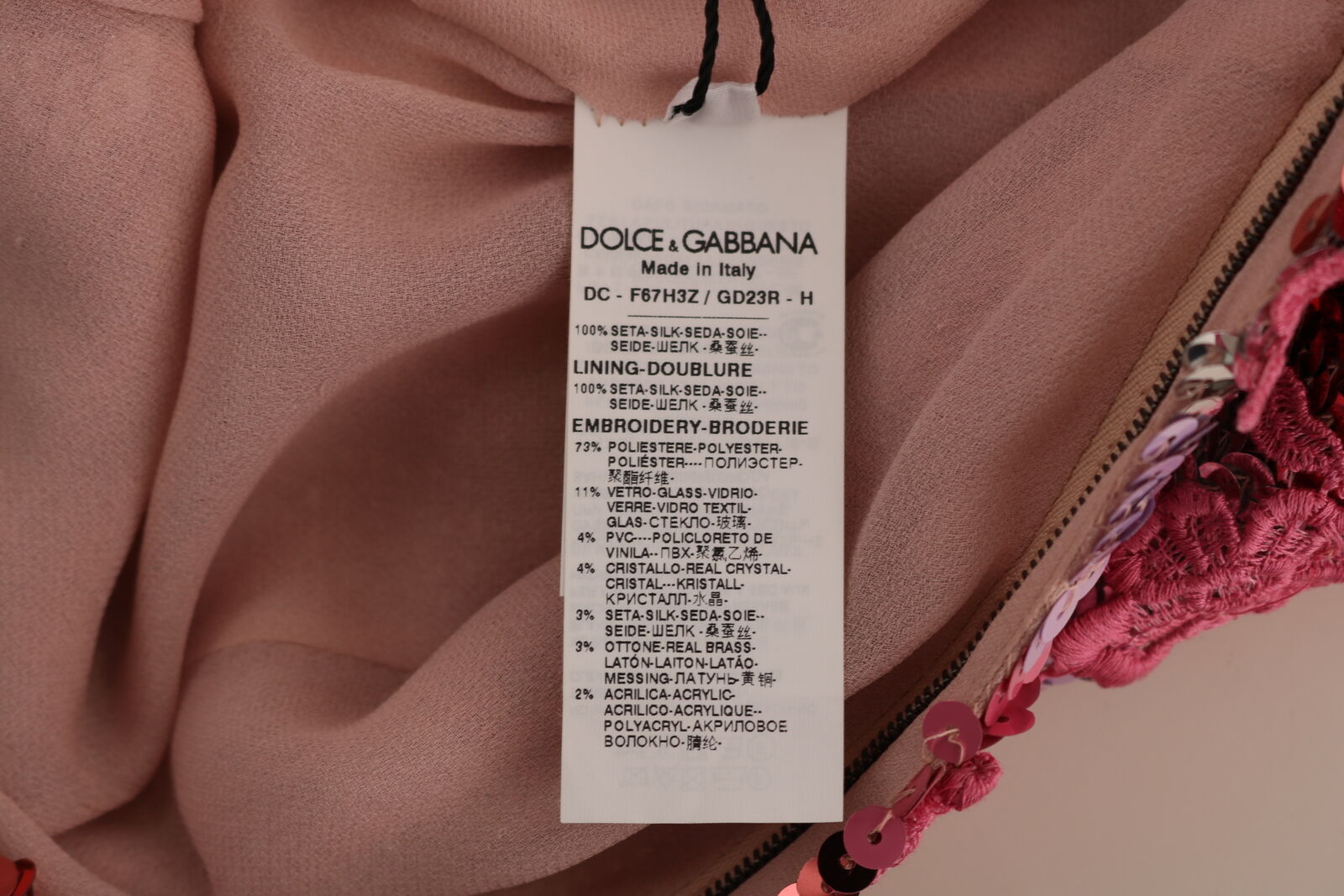 Step into the world of high fashion with this breathtaking Dolce & Gabbana floor-length dress, perfect for exclusive events and elegant evenings. Flaunting a stunning pink hue complemented by silver sequins and crystal detailing, this piece is the embodiment of luxury and sophistication. The 100% silk material ensures a sumptuous touch, while the full silk lining promises an impeccable drape. With 3/4 sleeves and a sleek back zipper closure, this designer gown is a testament to Italian craftsmanship, available in a limited edition to ensure your unique style shines.