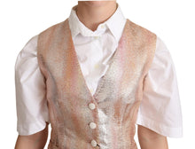 Indulge in the epitome of Italian luxury with our exquisite sleeveless waistcoat by Dolce & Gabbana. This brand new, tag-attached piece is a true representation of sartorial elegance, crafted from a sumptuous blend of silk, polyester, and elastane. Its tailored design is elevated by a captivating metallic sheen, ensuring you’ll be the center of attention wherever you go. Perfect for layering, this V-neck vest is a versatile addition to your wardrobe, reflecting the pinnacle of Dolce & Gabbana’s exceptional craftsmanship. Made in Italy, this garment is not just a fashion statement, but a treasure that offers both style and comfort.