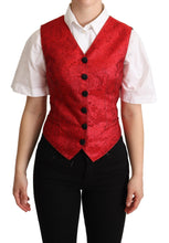 Exude elegance and bold style with this striking Red Brocade and Leopard Print Waistcoat from the esteemed fashion house of Dolce & Gabbana. This brand-new, tag-affixed piece is a testament to the luxurious and distinctive designs that the brand is renowned for. It features a smooth and dense brocade fabric, accented with a silky, shiny leopard print lining – a signature touch from designers Domenico Dolce and Stefano Gabbana. Its sleeveless vest design is secured by a sophisticated front button fastening, punctuated with the brand’s logo details, and masterfully crafted in Italy.