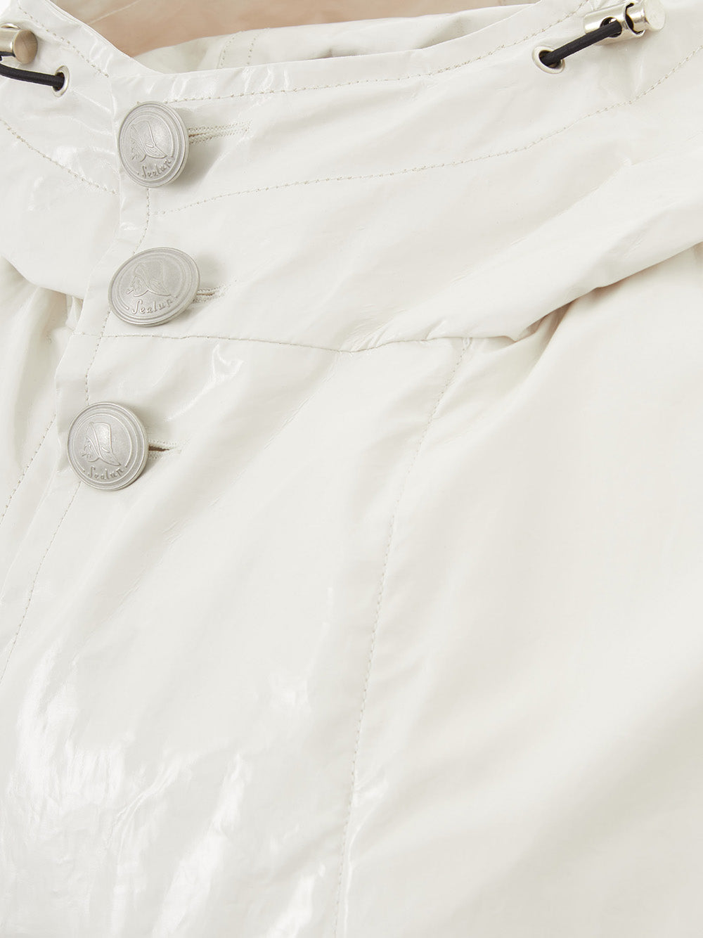 Stay stylish even on rainy days with this gorgeous, brand new white raincoat from Sealup. Perfectly balancing fashion with function, it features elegant metal buttons and a practical adjustable hood that’s ready for any weather. Ideal for completing any outfit with a touch of sophistication.