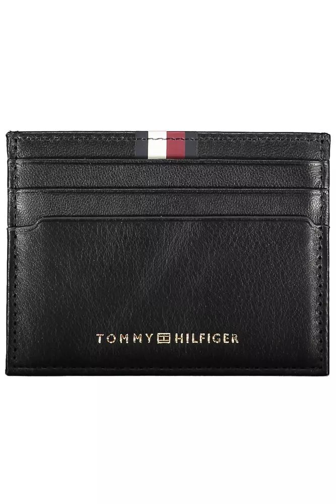 Tommy Hilfiger Sleek Black Leather Card Holder with Contrasting Detail