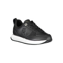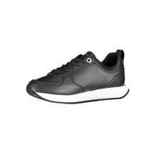 Stride with style and sustainability in these sleek black sneakers from Tommy Hilfiger. Designed with a sophisticated contrast of materials and the iconic brand logo, these shoes aren’t just a fashion statement; they’re a commitment to eco-friendly fashion with their use of 100% recycled polyester. Perfect for the sporty chic looking to make a positive impact.