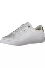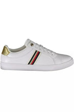 Step up your game with these stylish white sneakers showcasing contrasting details for a bold, fashionable statement. Adorned with the iconic logo, these shoes are not just about style but also about sustainability, crafted from 100% recycled polyester. Perfect for the eco-conscious fashionista, Tommy Hilfiger brings you a blend of luxury and responsibility.