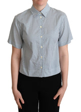 Gorgeous brand new with tags, 100% Authentic Dolce & Gabbana shirt is crafted from the finest quality cotton. The half-sleeved shirt has a polka dots pattern in blue shades throughout.