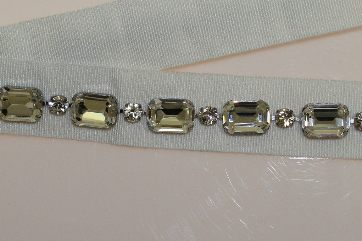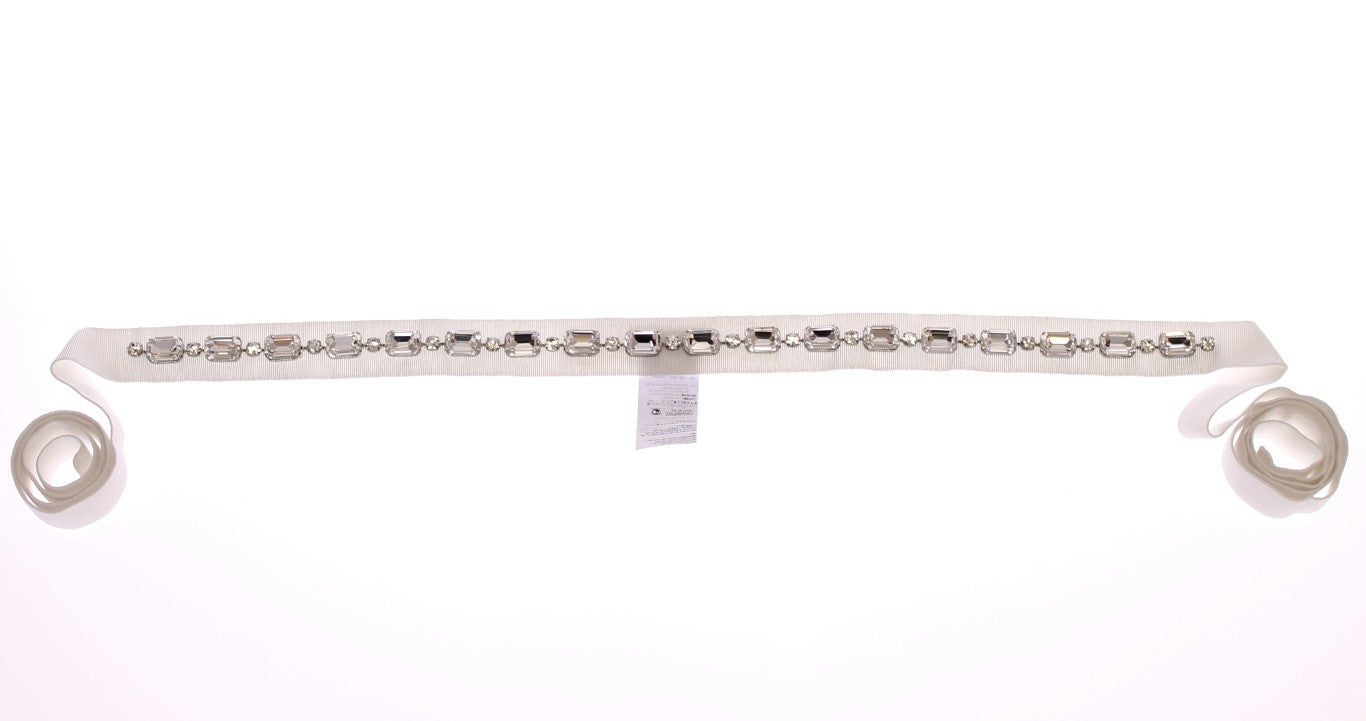 Adorn your ensemble with the opulence of Dolce & Gabbana’s white crystal-embedded waist belt. This stunning accessory showcases a dazzling array of clear crystals set upon a chic silver metal. Designed to be tied around the waistline, it adds a luxurious touch and an instant lift to any outfit. Impeccably crafted in Italy, it represents the brand’s dedication to elegance and craftsmanship.