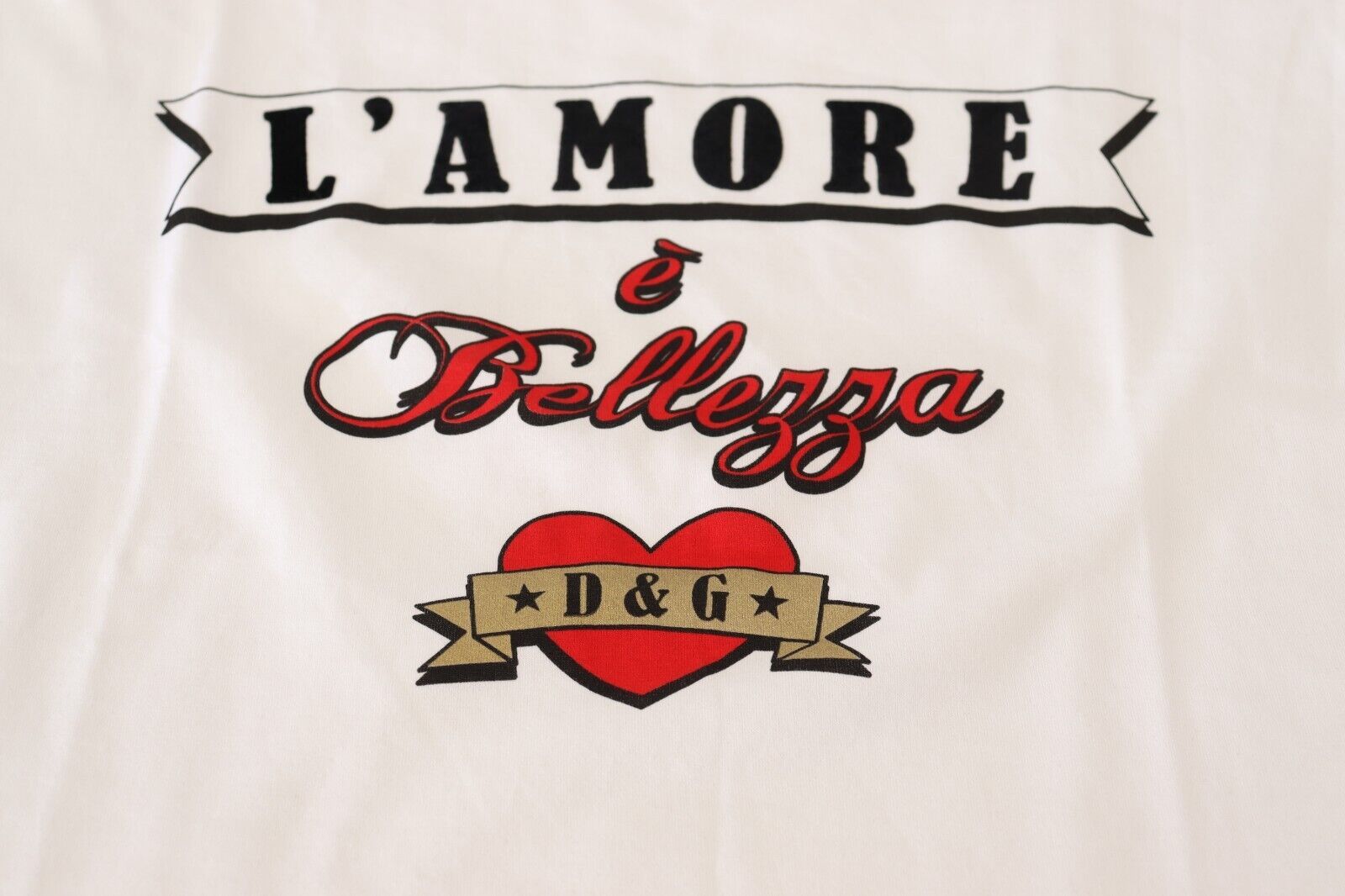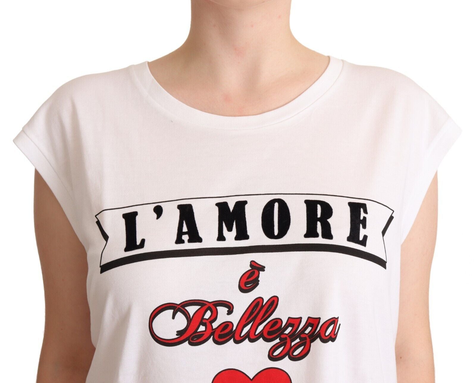Exude effortless elegance with this stunning white tank top crafted from the finest 100% cotton, showcasing an exquisite motive print that perfectly captures the essence of luxury. This Dolce & Gabbana creation is a testament to refined style, featuring a sleek crew neck and an eye-catching graphic print in black, red, and gold tones that emblazon the brand’s signature across the front. A touch of glamour is added with the gold-tone and black glittered logo patch adorning the back, ensuring your ensemble sparkles with sophistication. Impeccably designed and made in Italy, this piece marries comfort with high fashion, perfect for elevating your casual wardrobe.
