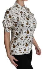 Indulge in the epitome of luxury with this 100% Authentic Dolce & Gabbana White Polo Top, featuring an exquisite Musical Instrument print. Crafted from the finest silk and meticulously made in Italy, this top showcases unparalleled craftsmanship. With its striking design and signature logo details, it’s a must-have for those seeking exclusivity and elegance in their wardrobe.