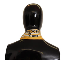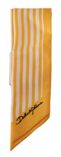 Indulge in the luxury of a striking Dolce & Gabbana striped foulard scarf. It boasts an exquisite Portocervo print with vibrant yellow and white hues, crafted from pure, sumptuous silk for an elegant touch to any ensemble. Logo details showcase the brand’s iconic mark of sophistication. Designed and made with Italian finesse, this scarf is an accessory that encapsulates both style and luxury.